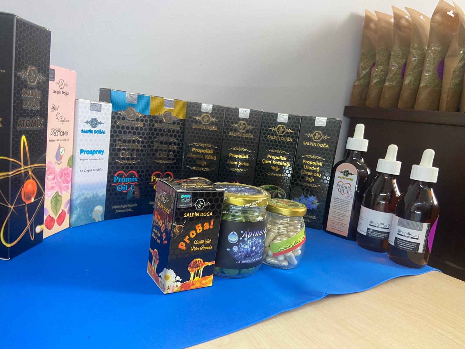 Atomix 350 ml, Protonik sprey, Prosprey, Promix Oil 1, Promix Oil 2, Promix Oil 3, Meyan Kökü, Atom sirke, Çam Kozalağı Yağı, Çörek Otu Yağı, Mineral Plus 1, Mineral Plus 2, Probal, Apinera 84 Mineral 125 gr, Hurma Poleni 30 caps oluşan set.